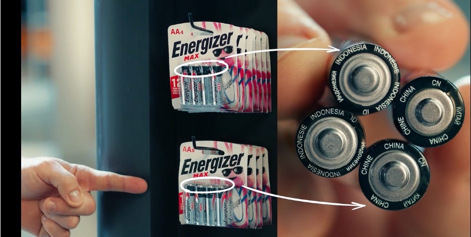 Buffett-owned Duracell touts “built in the USA”: On August 6, 2025, we noted “Made-in-America Is Making a Comeback,” citing a Walmart commercial, Buck Mason, and J. Press. That piece said: