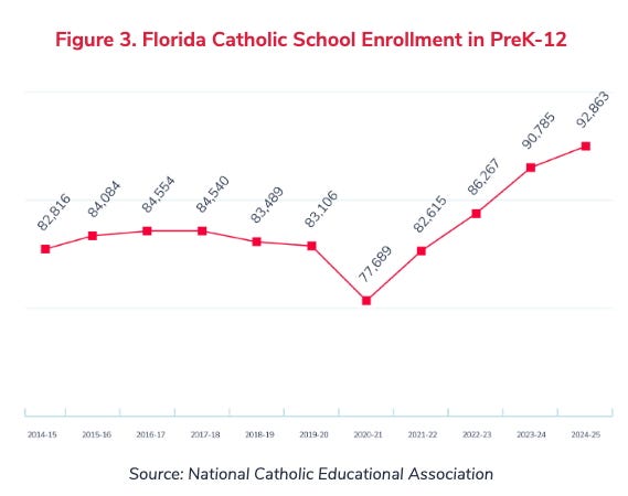 A new report highlights enrollment growth in Catholic Schools in Florida, where state policy includes school choice scholarships.