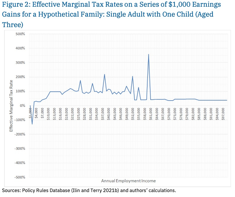 Research suggests that high effective marginal tax rates “effectively lock low income workers into poverty,” the paper says.