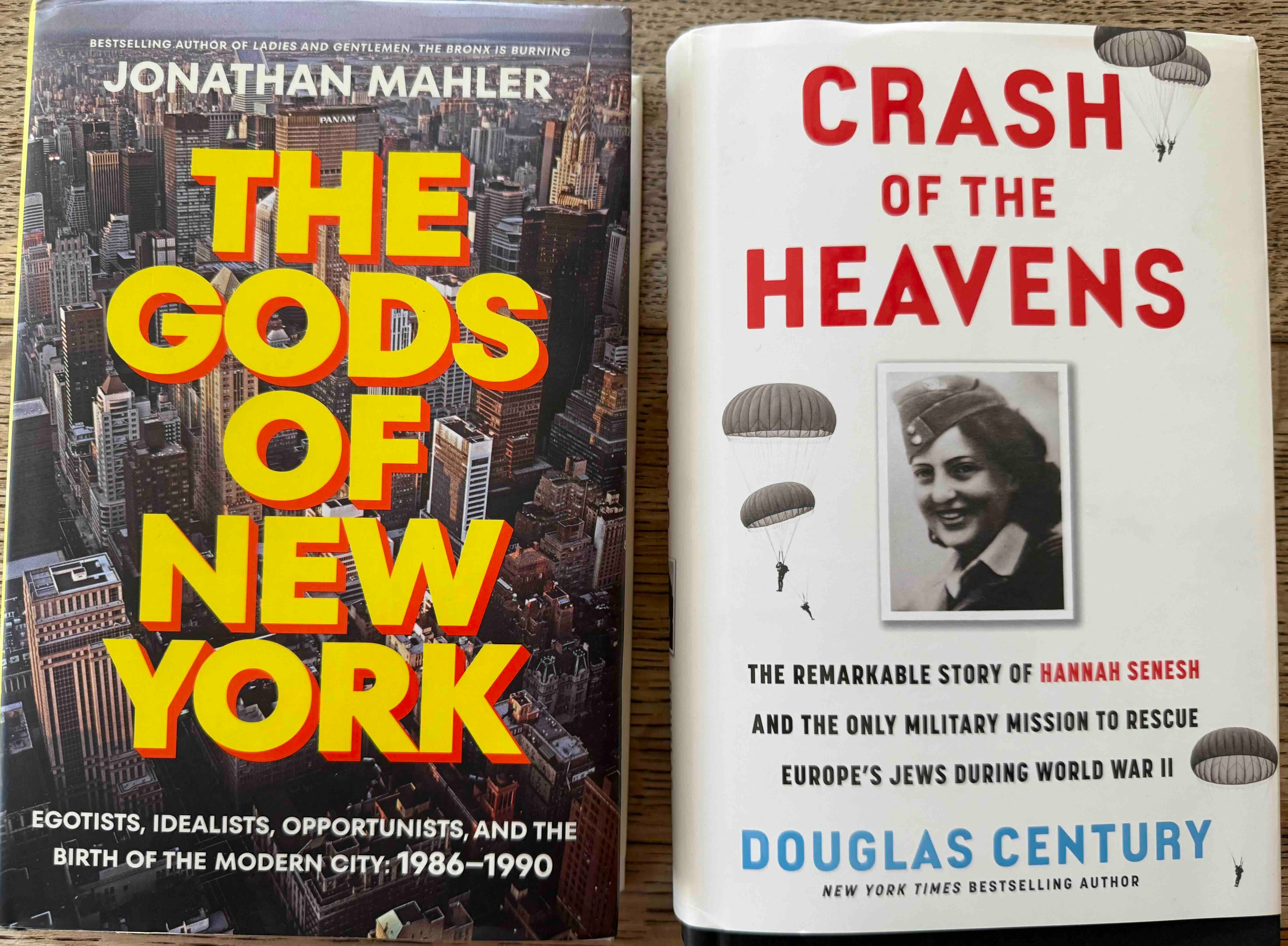, author of “The Gods of New York: Egotists, Idealists, Opportunists, and the Birth of the Modern City: 1986-1990,” and with , author of “Crash of the Heavens: The Remarkable Story of Hannah Senesh and the Only Military Mission to Rescue Europe’s Jews During World War II.” Both were my colleagues in the 1990s at the Forward newspaper, then edited by Seth Lipsky, which we discuss a bit toward the end of the show.For those who missed it, the video and a very rough, computer-generated, unedited transcript are available above. I started off by telling Mahler how much I had enjoyed the book, both for his skill as a fluid, elegant prose stylist, and how just as a matter of writing craft this book really kept me engaged as a reader in immersive narrative, which I know as both a reader and a writer is not a simple or easy thing to do. I noted that there’s a lot in the book about the various Michael Milken and Ivan Boesky and even more obscure white-collar Wall Street cases—Robert Freeman of Goldman Sachs, Richard Wigton and Kidder—and said Mahler handles the details of all those really deftly and in a way that is appropriately skeptical of prosecutorial overreach and avoiding the common trap of assuming that just because someone is making money on Wall Street they are a criminal. And the other thing I appreciated was that I detected at least once some humor poking through even when it comes to Mahler’s own professional home, the New York Times.