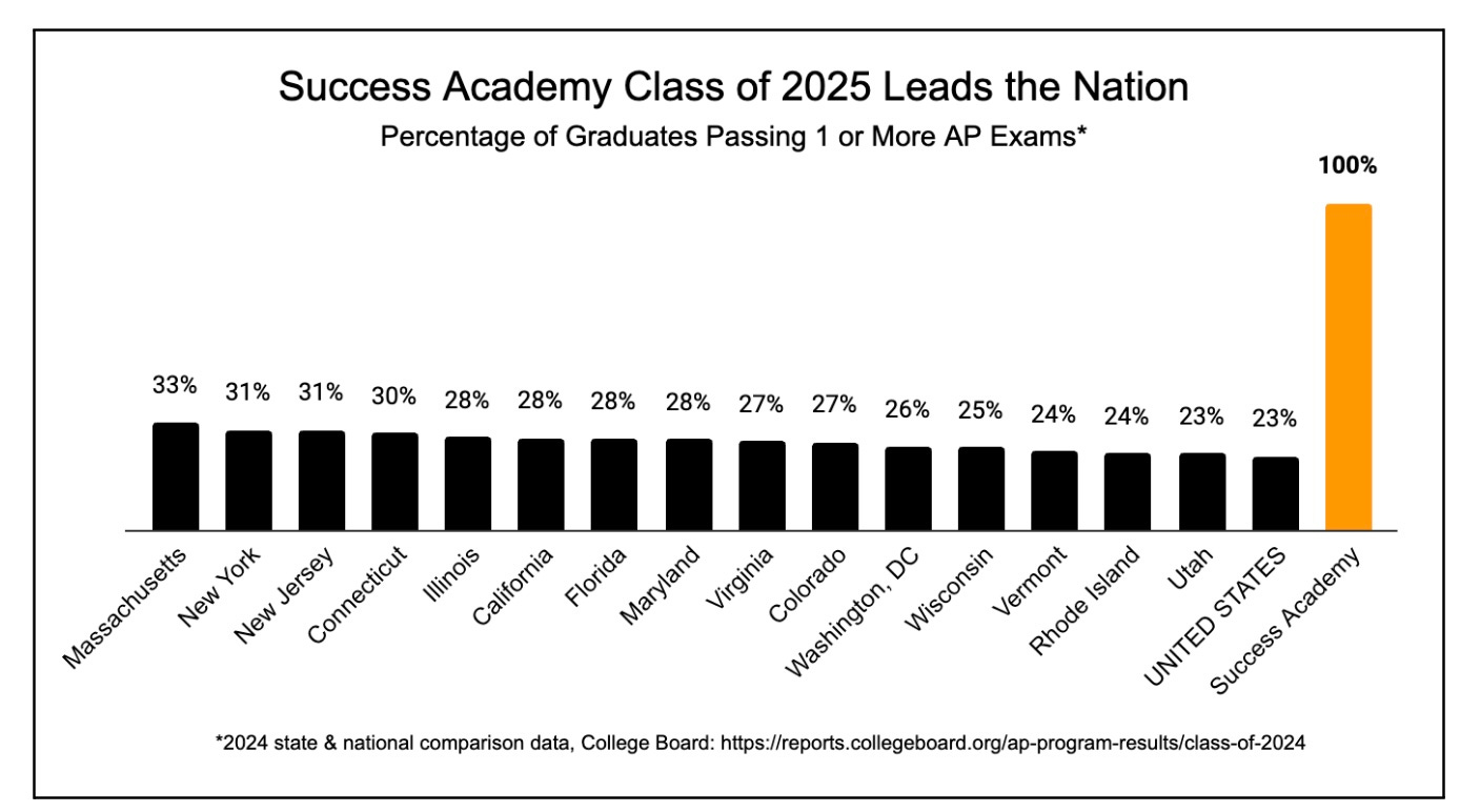 More than half of the Success Academy graduating seniors—65 percent of them—passed five or more AP tests. That is a rare feat.