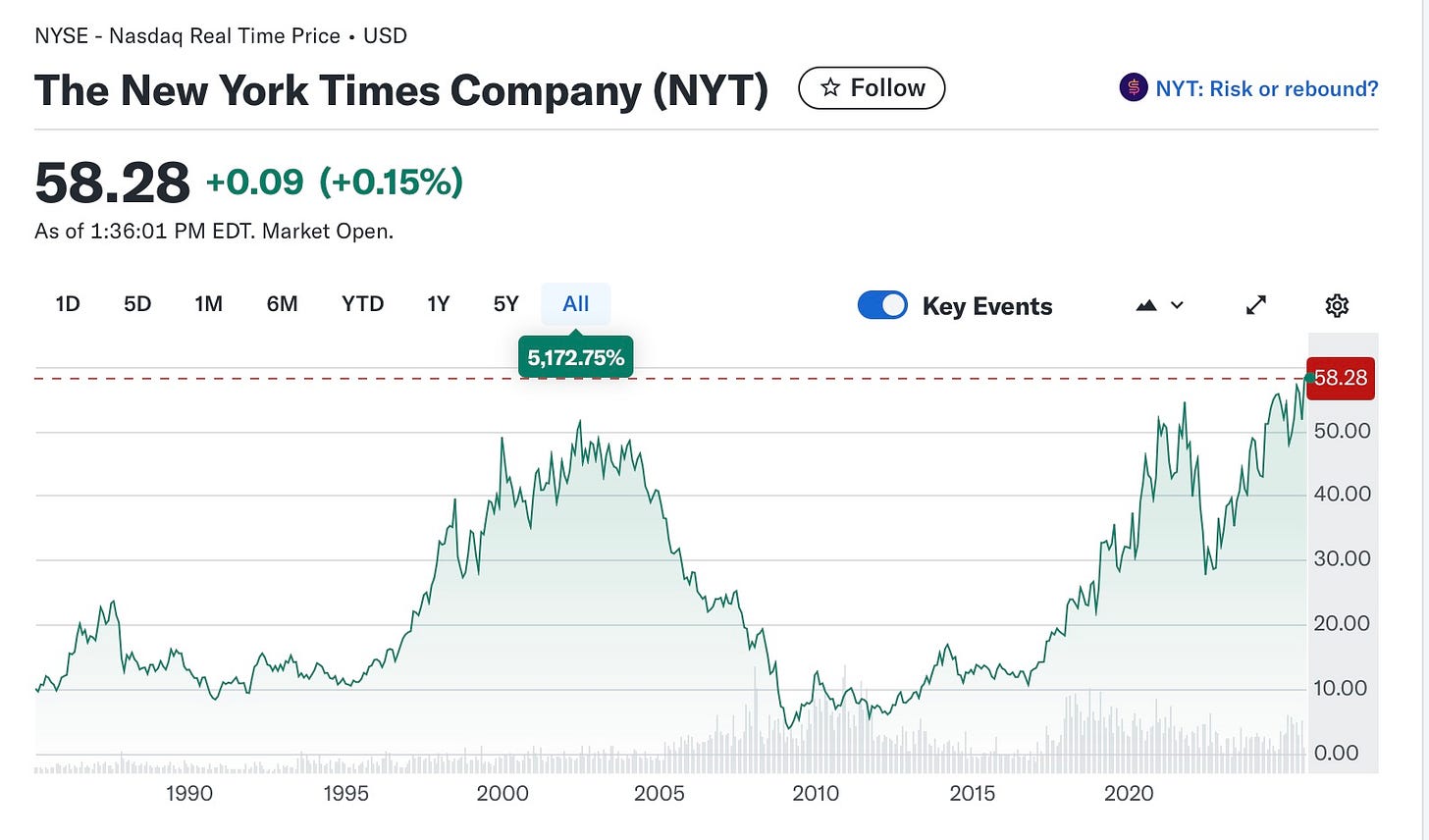The New York Times Company stock hit a record high earlier this week after a second-quarter earnings release in which the Times says it had brought its “total number of subscribers to 11.88 million.” But beyond the headline subscriber number and the soaring stock price is a more complicated story with some underappreciated risks. Here are the full details: