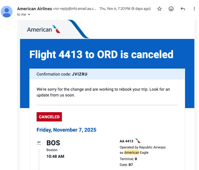 “Your flight to Chicago O’Hare - Canceled,” was the subject line of the email I got last Thursday night notifying me of the news that, because of Washington dysfunction, I wouldn’t be able to have a Friday night dinner that I had been looking forward to.