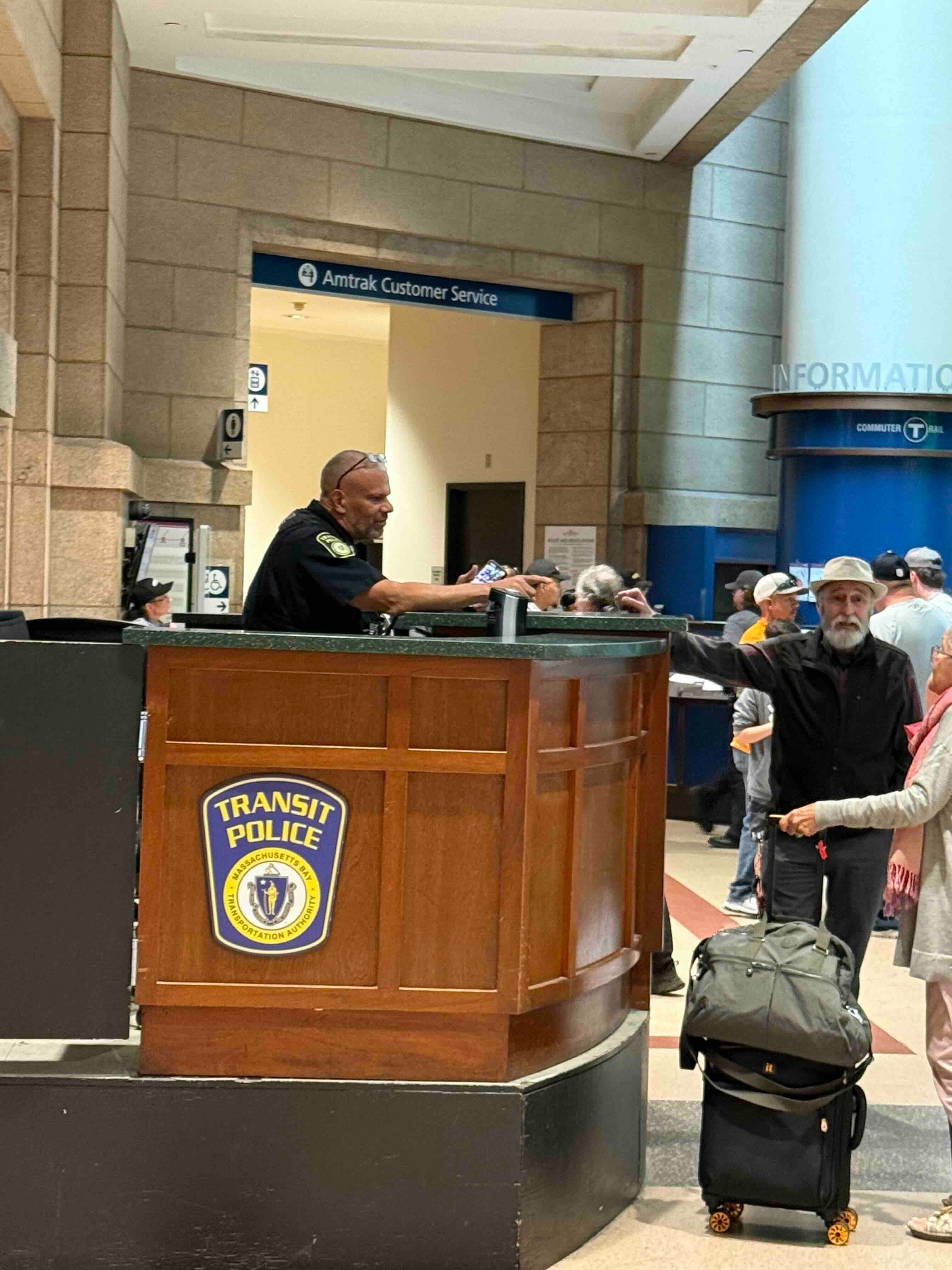 Silly police tactics In the middle of the main hall of South Station is a desk labeled “transit police.”