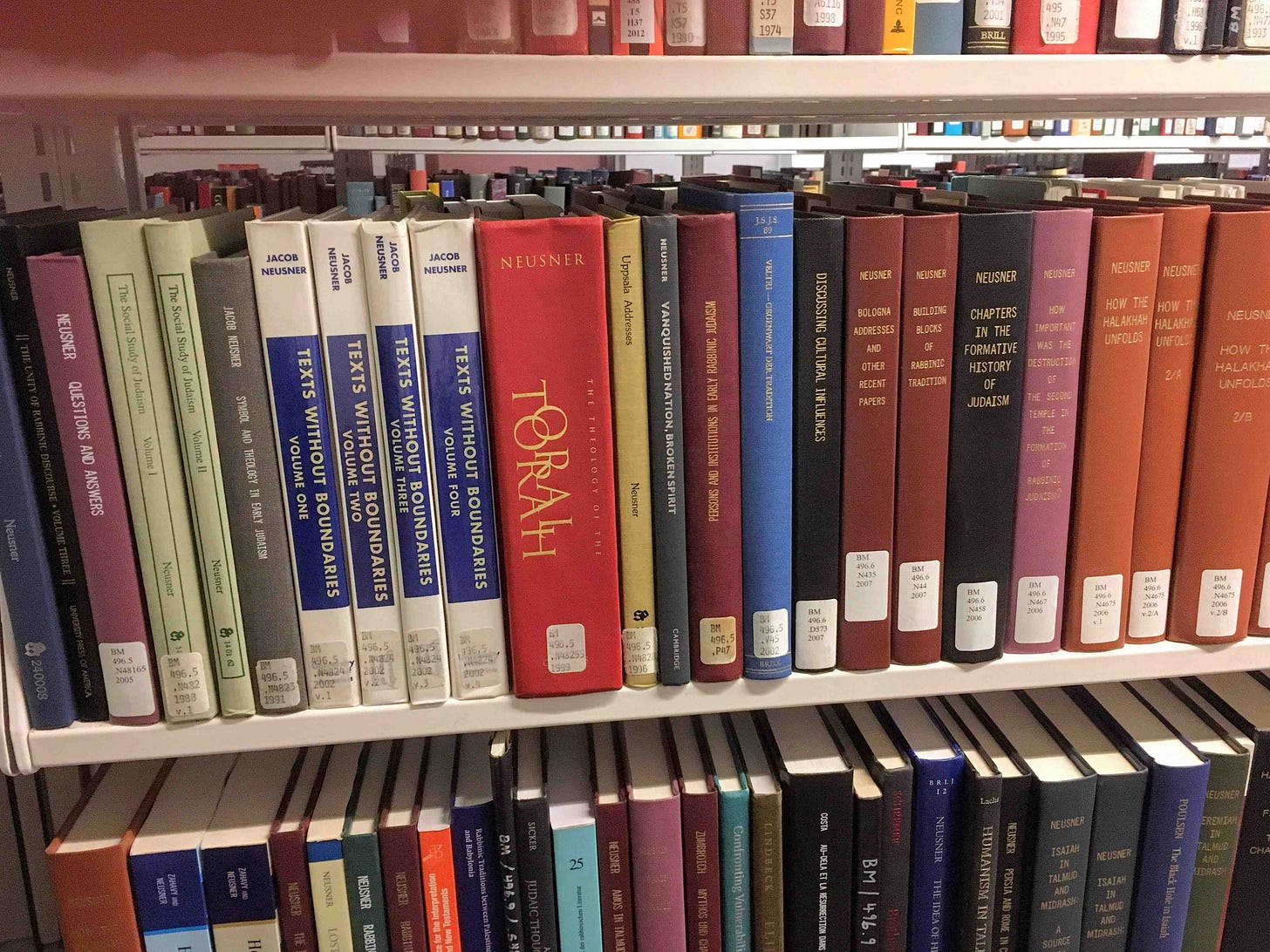 Jacob Neusner yahrzeit: Back in 2016 for the New York Sun I covered the memorial service for Jacob Neusner, a remarkably prolific religious studies scholar who took the Hebrew and Aramaic texts of the Mishna and the Talmud, translated them into English, and explained how they functioned to sustain rabbinic Judaism and influence and interact with early Christianity.